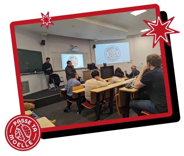 L’objectif de l’association Passe Ta Moelle est de promouvoir et faire connaître le don de moelle osseuse, tout particulièrement auprès des sportifs et des étudiants entre 18 et 35 ans, âge auquel ils pourront s’inscrire au registre de donneurs.